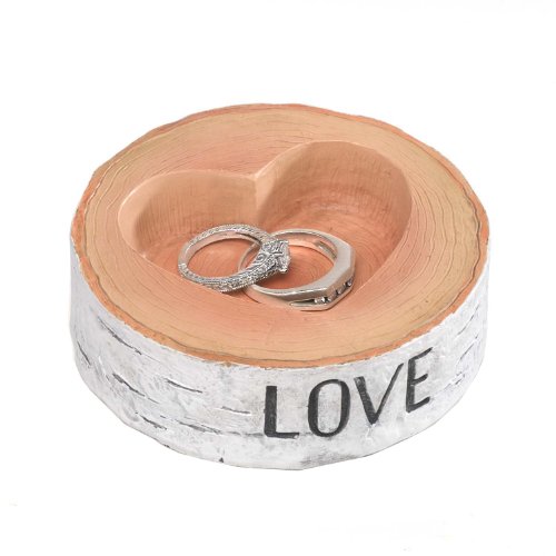 - Rustic look bowl has a heart shaped cut-out perfect for holding rings
