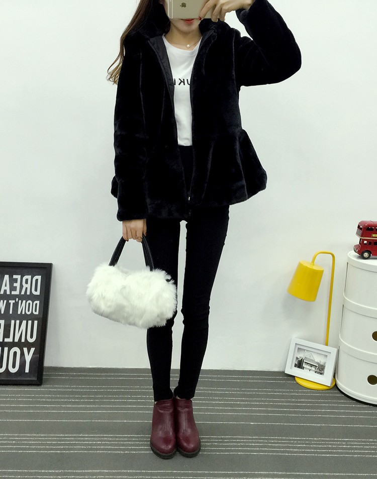 トレンド☆フェイクファー ショートコート ペプラムジャケット