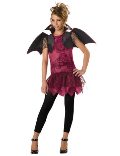 Studio : Incharacter Costumes Publisher : Incharacter Costumes Binding : Toy Product Description The Twilight Trickster girls vampire costume includes a dress, overskirt, bolero, bat wings and leggings. This girls vampire costume comes in kids and tween sizes Small, X-Large, Medium, Large. Please note: This item's color may vary due to inherent manufacturing variations or your computer monitor's color settings. The item you receive will be identical or substantially similar to the item pictured in this listing. 0