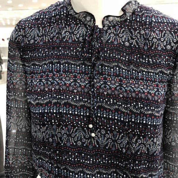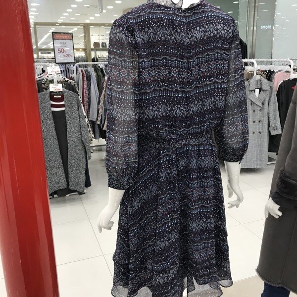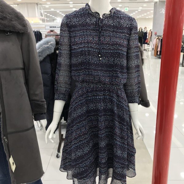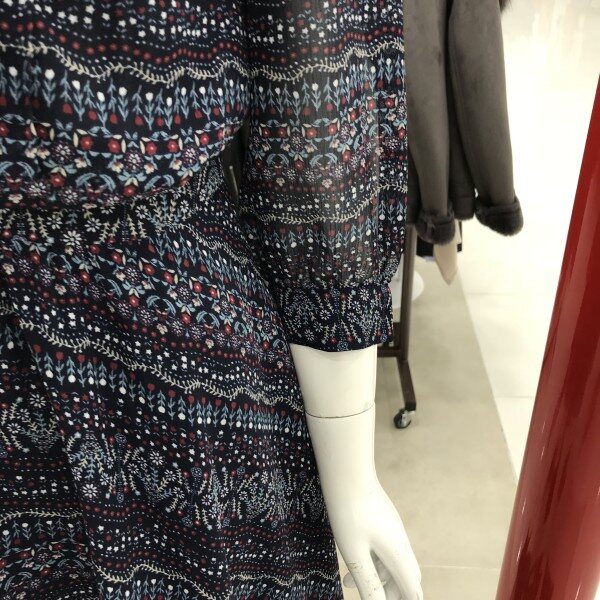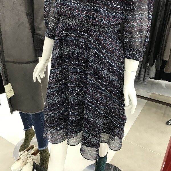 잔잔한 꽃프린트에 칠부소매인 쉬폰원피스입니다네이비에 레드무늬로 화사하고 여성스러워요허리밴딩 입니다