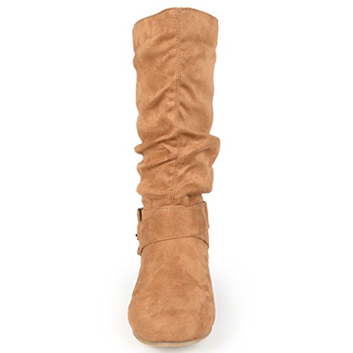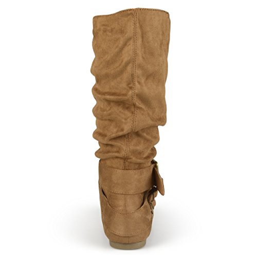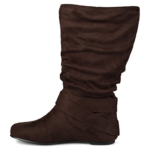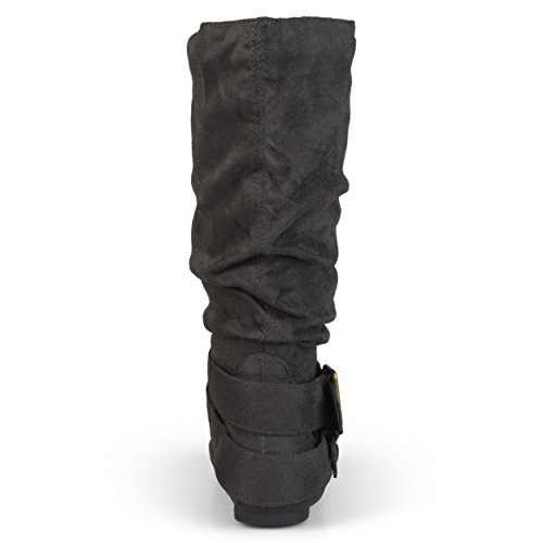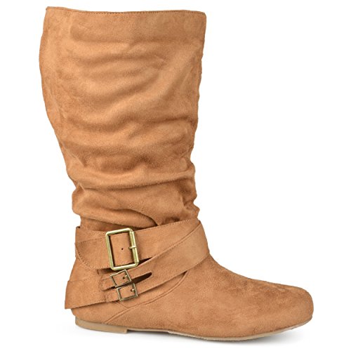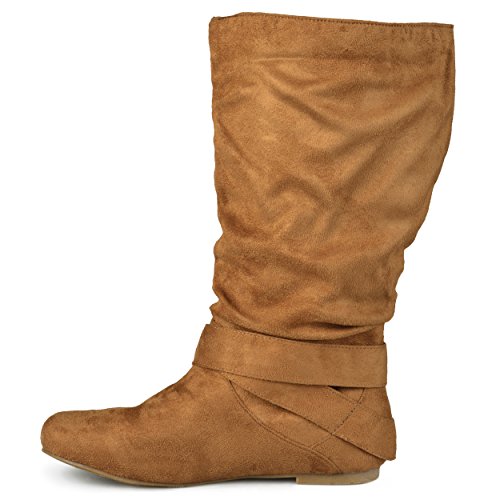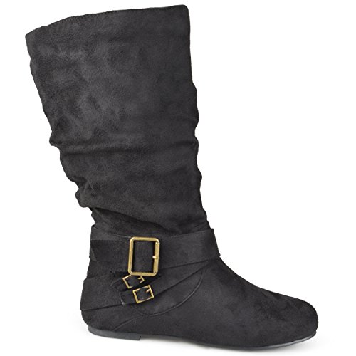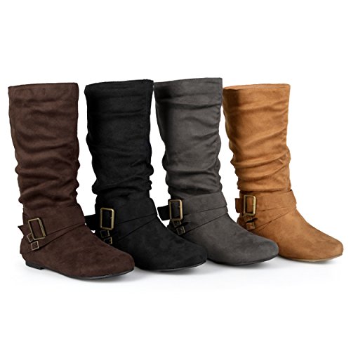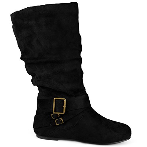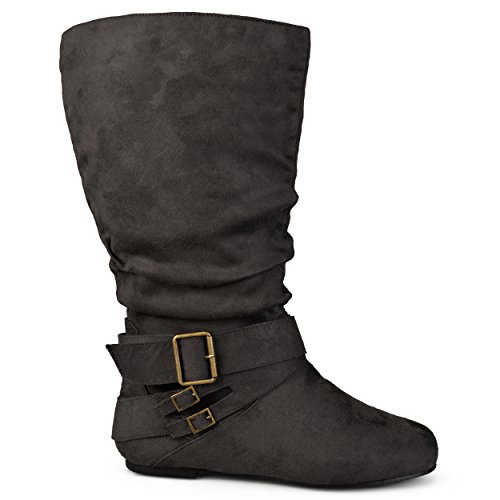 Product Description Express your style this season in wide-calf buckle boots by brinley co. these fashionable boots feature premium faux suede uppers that rise mid-calf. classic round toes and strappy detail with varying buckles accent the ankles to complete the look. 0