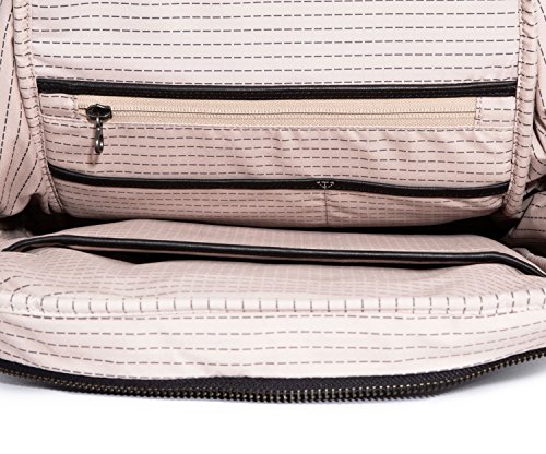 고급 레더와 왁스 캔버스의 ZIP 톱 팩.본 가죽(껍질) 바이《딘구》,트림.우산 또는 워터 보틀이 수납 가능한 확장식 싸이드 포켓.소품 수납용 내부 오거나이저.