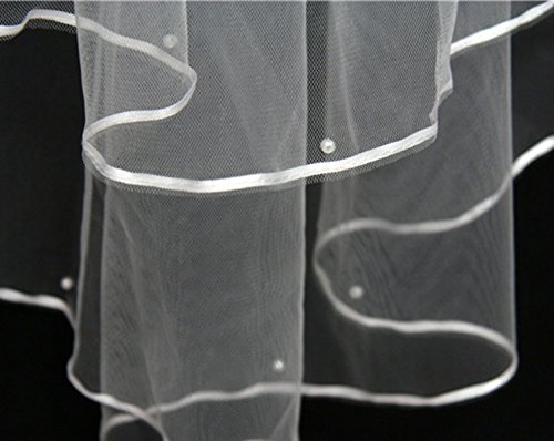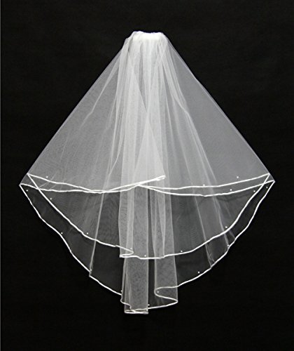 (AIBIYI)/Accessories/Scarves/DIRECT FROM USA/AIBIYI Short 2 Tiers Cute Beaded Tulle Bridal Wedding Veils With Comb A8