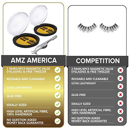 AMZ 2 Pairs/8Pcs Magnetic Eyelashes No Glue Reusable False Eyelash Extension Dual Magnetic 0.2MM Ultra-lightweight Comes With Bonus Tweezer