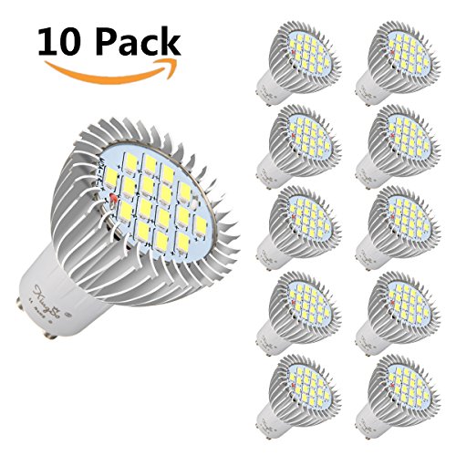 KINGSO GU10 LED Bulbs, Pack of 10, 4W (40 Halogen Bulbs Equivalent), 450lm, 6000K, MR16 LED Light Bulb, AC 85~265V (Pure White)