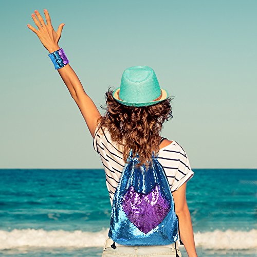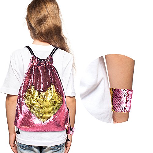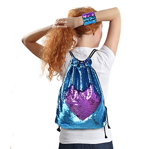 (KUUQA)/Accessories/Luggage, Bags Travel/DIRECT FROM USA/KUUQA Sequin Mermaid Bag and Bracelet Drawstring Sports Backpack Magic Reversible Sequin Glitte...