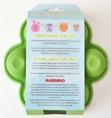 BABY SAFE- The SiliZoo Baby Food Freezer Tray is FDA Approved and Free of BPA, Phthalates, allergens, and Toxins. The tray is also Freezer safe, Dishwasher safe, Microwave safe, and Oven (460 F) safe.