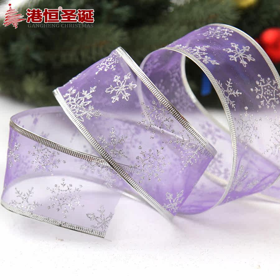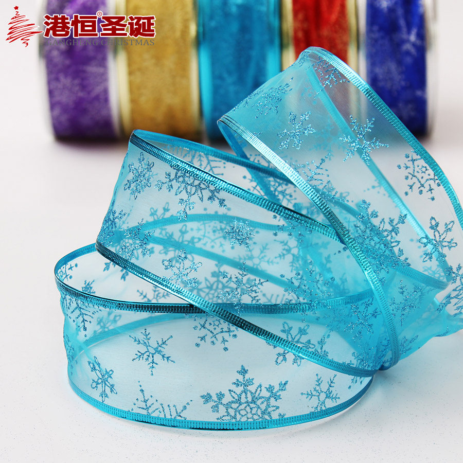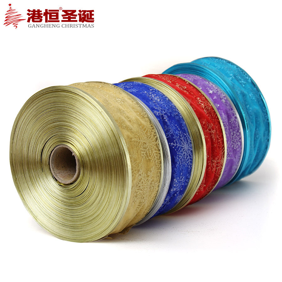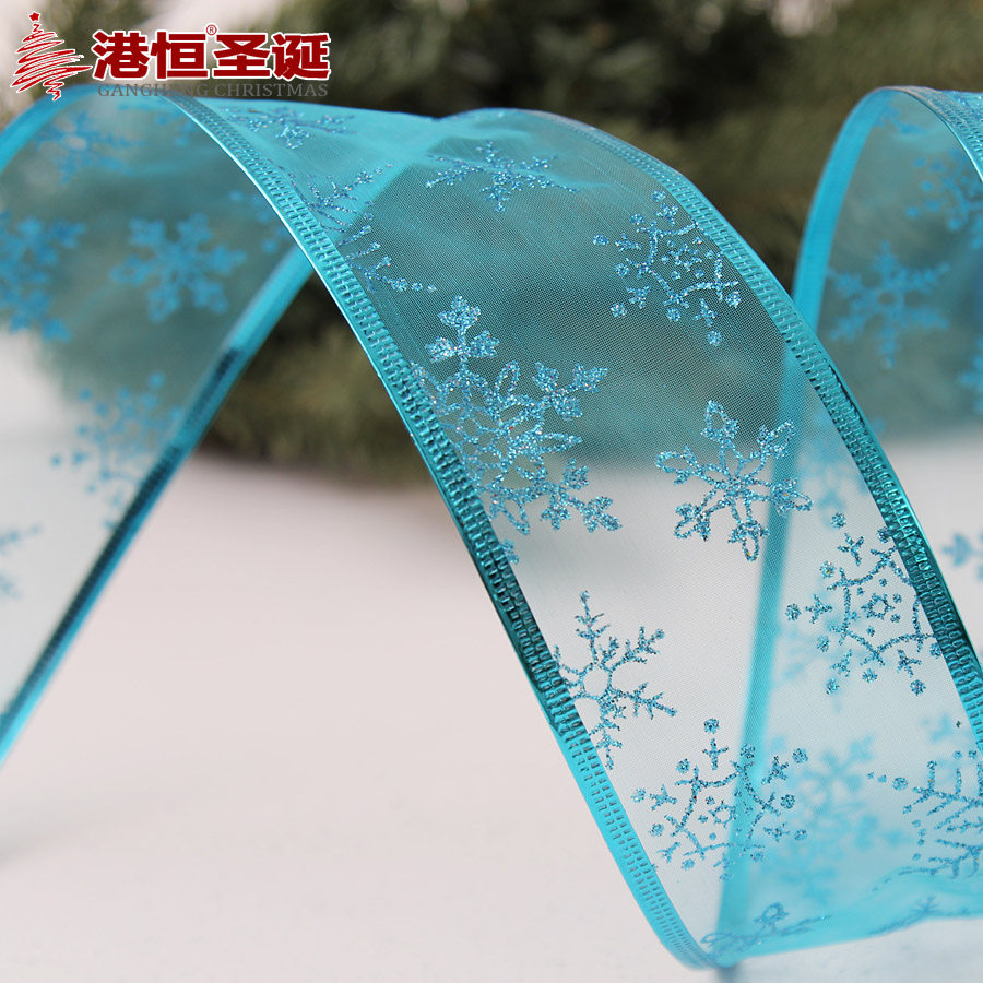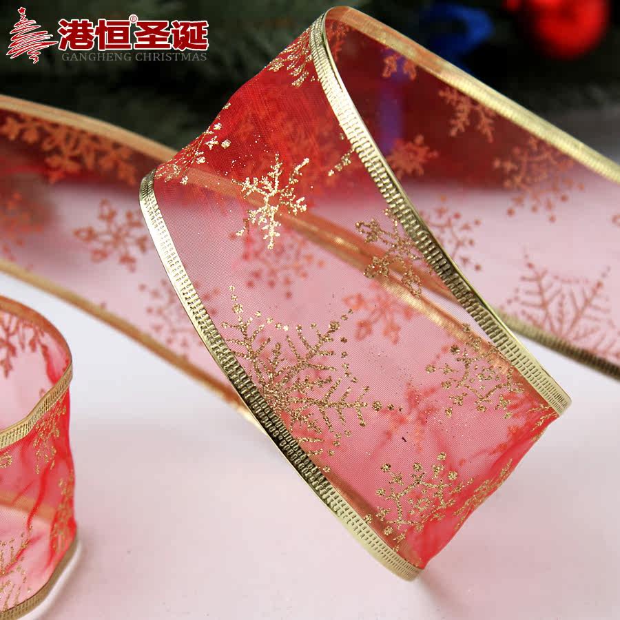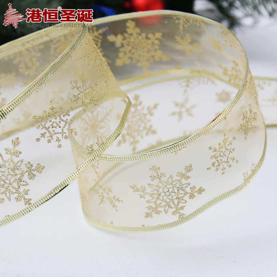 港恒圣诞6.3x200cm纱底雪花图案金粉压圣诞织带 圣诞树装饰品10g