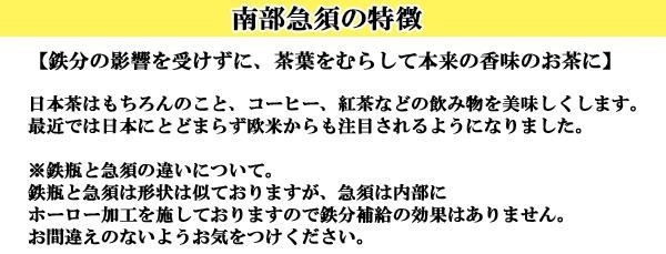 岩手県で受け継がれる伝統の技をご自宅に!!急須は内面ホーロー仕上げであるため、直接内側も洗えてお手入れも簡単。日々の生活にぜひご利用下さい。 |