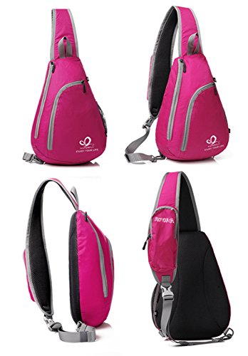 WATERFLY Chest Sling Shoulder Backpacks Bags Fashion Cute Crossbody Rope Triangle Pack Rucksack for Hiking or Multipurpose Daypacks and School Handbag for Man Women Lady Girl Teens(Rose)