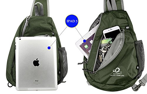 WATERFLY Chest Sling Shoulder Backpacks Bags Fashion Cute Crossbody Rope Triangle Pack Rucksack for Hiking or Multipurpose Daypacks and School Handbag for Man Women Lady Girl Teens (Army Green)