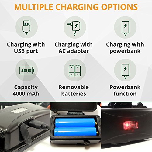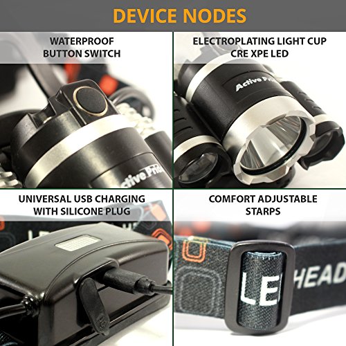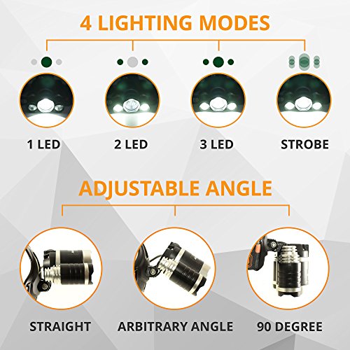 • MULTIFUNCTIONAL: This led headlamp comes with 4 unique functional modes with a red LED mode for night vision to ensure safety and for best experience in any weather condition during your favorite night outdoor activities.