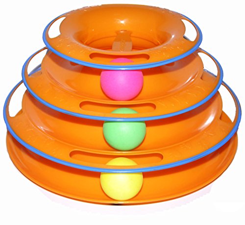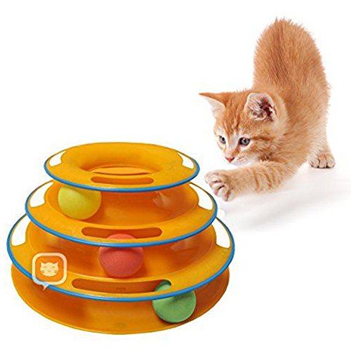 -. Feature : This innovative pet product keeps your cat entertained while giving them the physical and mental work out they require. / The three stages include ball that zoom around the multi-level tracks, mimicking natural prey and stimulating healthy activity. / New design includes a bar across top of toy to prevent cats from sticking their head in and getting stuck. / Design also includes anti-slip grips to prevent the toy from sliding around while being played with. / This toy is sure to make your cat happy and healthy.