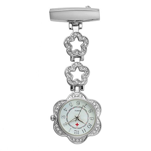 Fintier 패션 반짝반짝 꽃 간호사 워치 간호사 시계 반대 시계 회중 시계 간호사 핑크 립