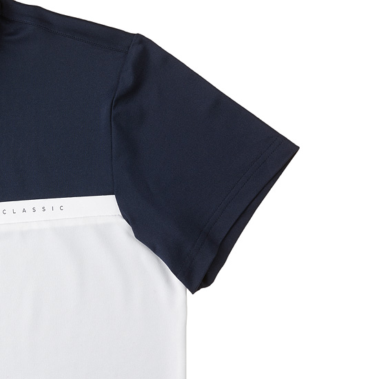 - 몸판 투톤 배색으로 스포티한 포인트를 준 남성 피케 티셔츠.