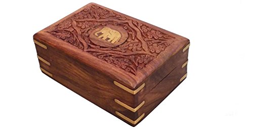 Thanks Giving Gift for your Loved Ones, Wooden jewelry Box, Center elephant carving Work Storage Box, Vintage Box, Keep safe Box, 8X5 inch.