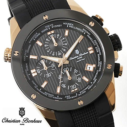 원본상품명: [クリスチャン ボヌ?ル]Christian Bonheur 腕時計 クロノグラフ ワ?ルドタイム 防水 セラミック ラバ?ベルト 流通限定 CB16401-PGBK メンズ
