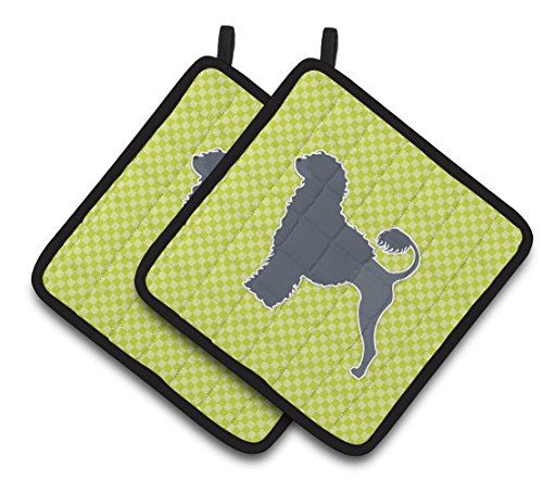 Caroline's Treasures Portuguese Water Dog Checkerboard green Pair of Pot Holders BB3868PTHD, 7.5HX7.5W, Multicolor