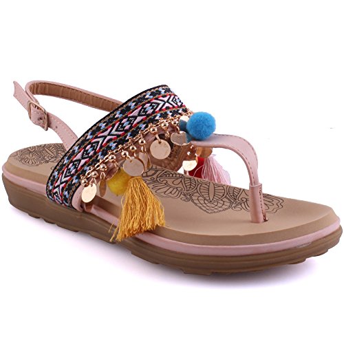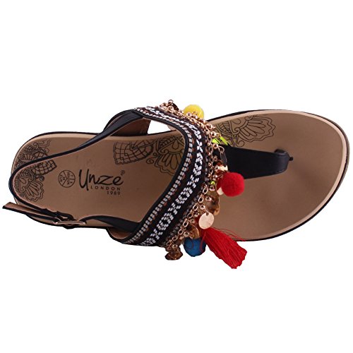 (Unze London)/Women's/Sandals/DIRECT FROM USA/Unze Women ‘Terry’ Embellished Casual Hangout Festival Evening Flat Sandal UK Size 3-8 - 160617-9