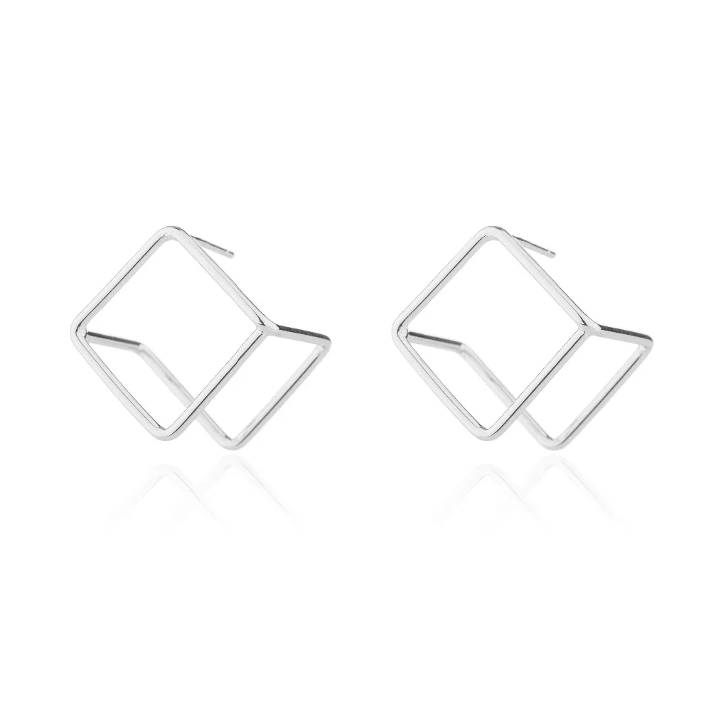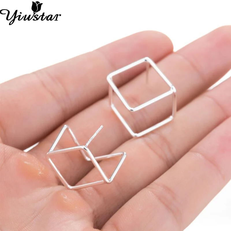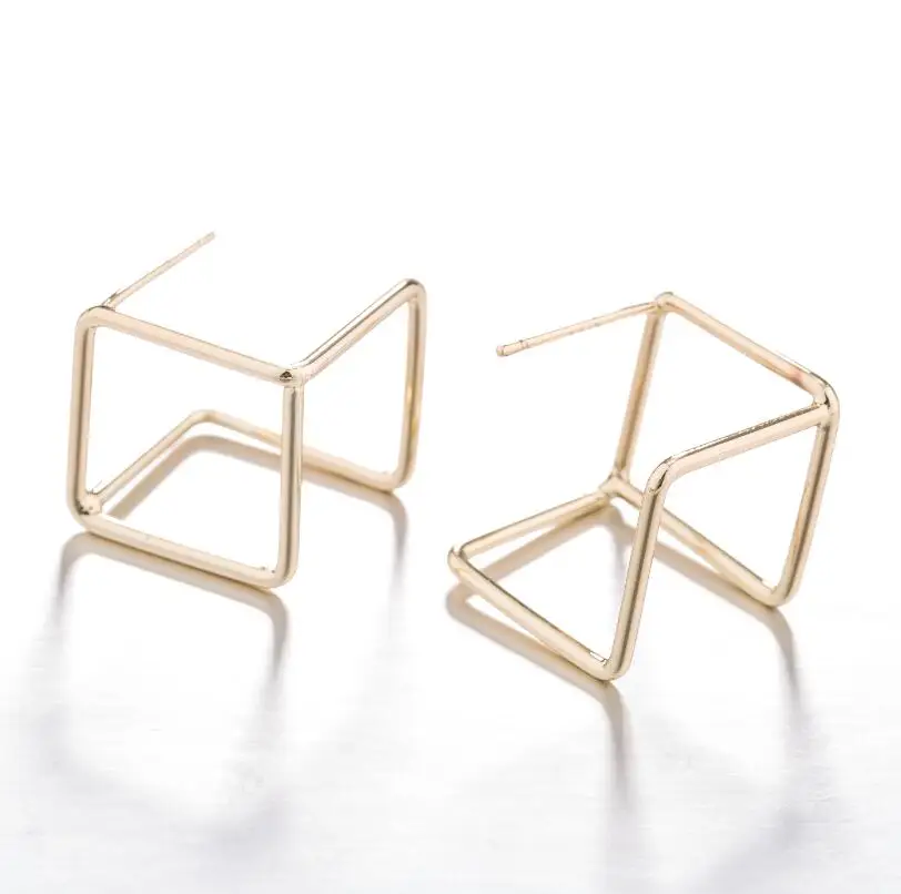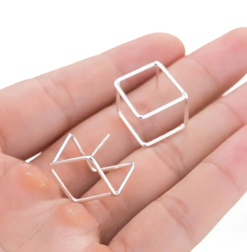Earrings Sell Point:Square 3D Cube Stud Earrings Origami Earrings