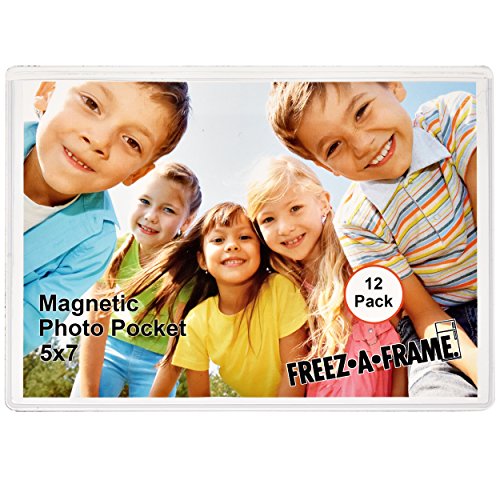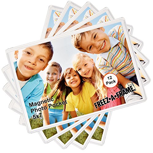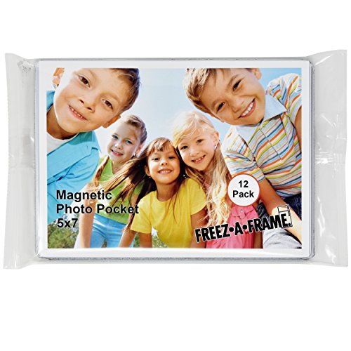 12 Pack 5 x 7 Magnetic Picture Frames Pockets Sleeves Holds 5 x 7 Inches Photo for Refrigerator by Freez-A-Frame Made in the USA