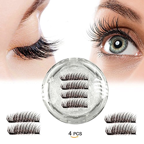 Three Magnetic Eyelashes, Ultra Thin Fiber Magnet Lashes Best 3D Reusable Fake Lashes Extensions Cosmetics,4 Pcs