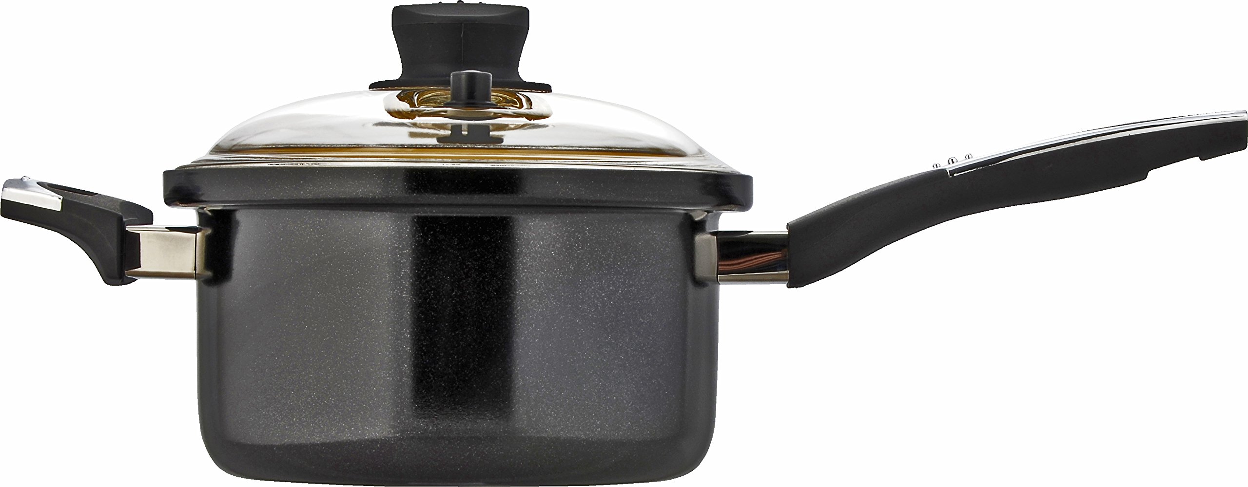 Furthermore, since the steam valve pulls out extra pressure to keep constant temperature and constant pressure inside the pot, cooking with a small amount of water and oil is possible.