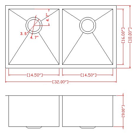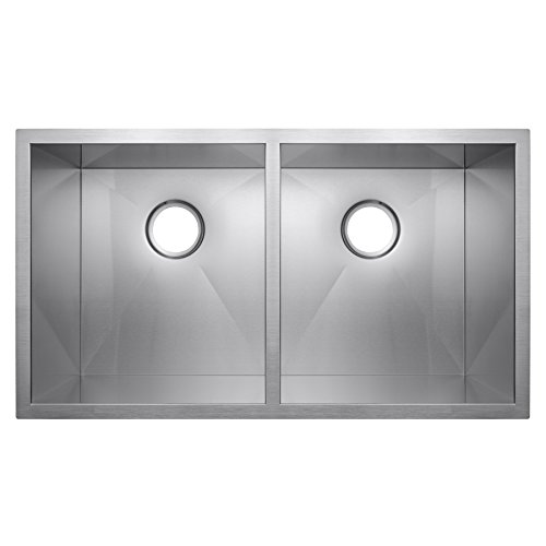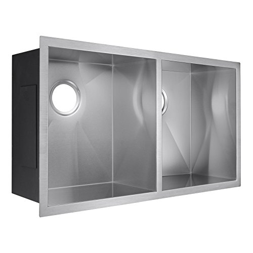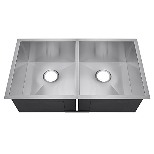 Golden Vantage 32" x 18" x 9" Undermount Handmade 18 Gauge Zero Radius Stainless Steel Kitchen Sink (50/50 Dual Bowl)