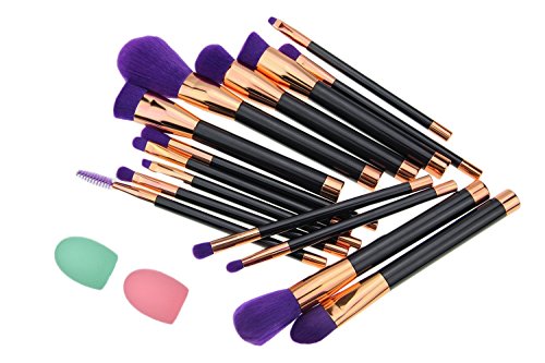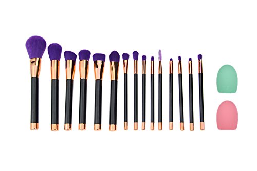 Makeup Brushes Kit, Kazora Cosmetic Brush Full Set for Eyeshadow Eyeliner Foundation Blush Concealer + 2pcs Makeup Brush Cleaner Egg (15pcs, Purple)