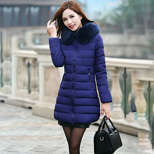 -. Title : Honel レディース 綿ダウンジャケット レディーズ  シルエットコート ダウン ジャケット 防寒服 レディース 冬物 ロング コート 防風 ひざコート 秋冬 ダウンジャケット 大きいサイズ Lサイズ 素敵 防寒 コート (ブルー)