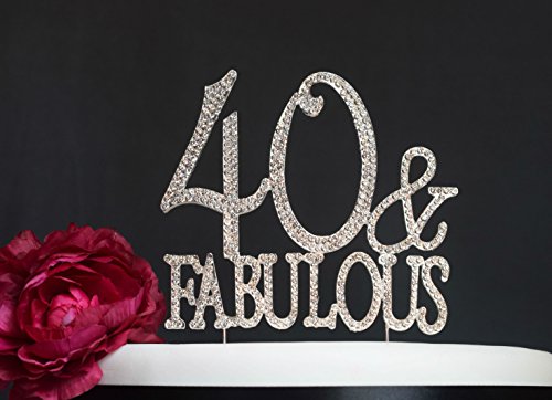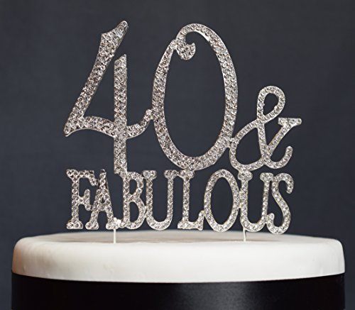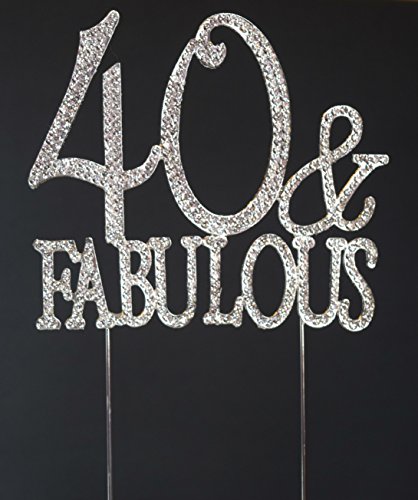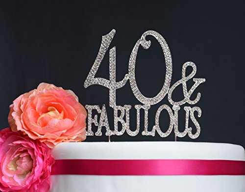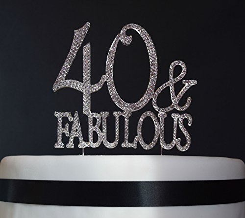40 & Fabulous Birthday Cake Topper - Premium Quality Rhinestone Monogram Number 40 Rhinestone Cake Topper for Your Birthday Party Celebration (40 & Fabulous Silver)