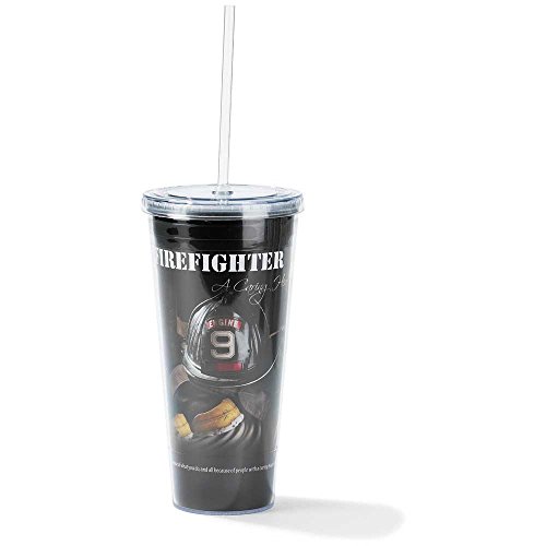 Black Firefighter Gear 20 Oz. Travel Tumbler Screw Top Lid and Straw