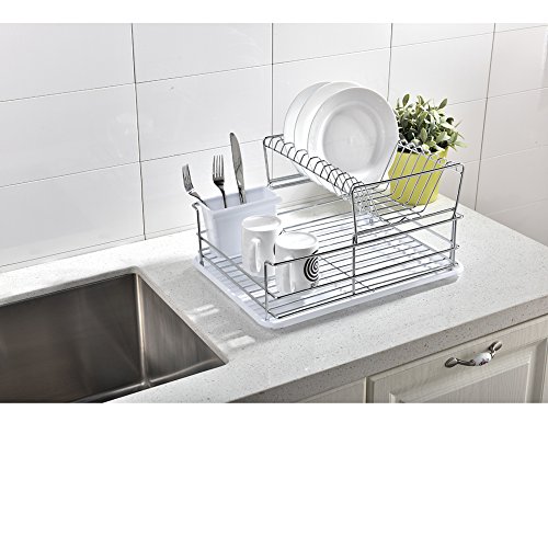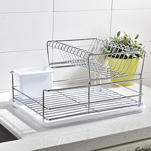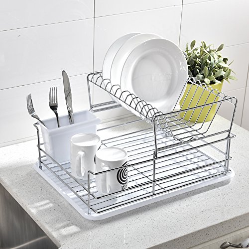 Best Commercial Steel Rust Proof Kitchen In Sink Two Tier Dish Drying Rack, Chrome Dish Drainer With White Drainboard