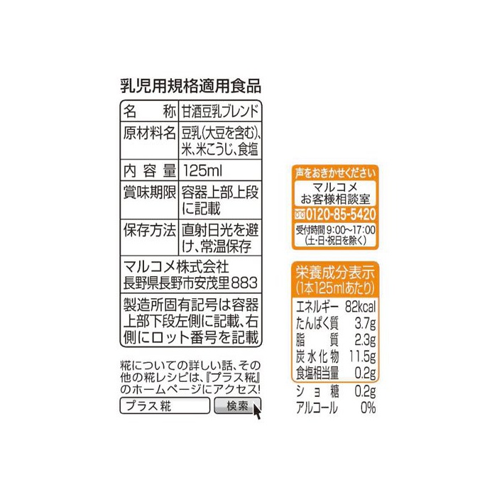 원본상품명: マルコメ プラス 甘酒LL 豆乳 125ml×18本