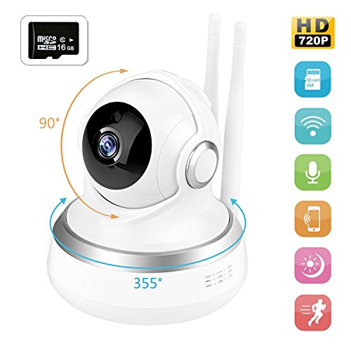 Prunend Wireless Security Camera, 720P Cloud Storage Live Steam HD Home Surveillance IP Camera WiFi Baby Monitor with Night Vision Pan/Tilt Two way Talk(Included 16GB MicroSD card)