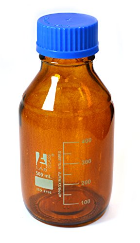 Eisco Labs 500ml Amber Reagent Bottle with Screw Cap and 50ml Graduations