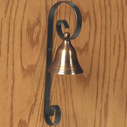 3 in. wide; 3¼ in. deep and 9½ in. high. This bell mounts to your door with two screws. When the door is opened; the bell moves and rings.