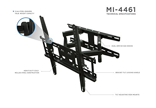 -. Title : Mount-It! Articulating TV Wall Mount Corner Bracket, VESA 400 x 400 Compatible, Stable Dual Arm Full Motion, Swivel, Tilt Fits 32, 37, 40, 42, 47, 50 Inch TVs, 115 Lbs Capacity With HDMI Cable Black