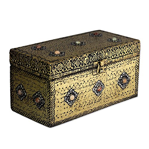 NOVICA Repousse Brass Jewelry Box, Metallic 'Mughal Treasure Chest'