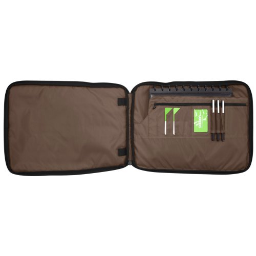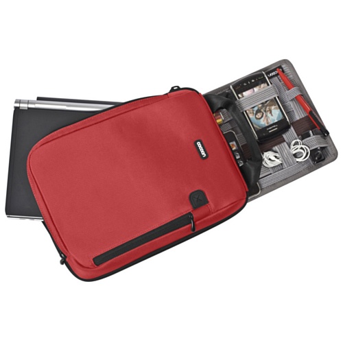 Vertical efficiency is the rule for this 16 inch ballistic nylon laptop case with convenient pocket storage and functional GRID-IT storage, with a padded handle and front-grid pocket that allows safe and easy access to your digital necessities. Accommodates up to a 16" laptop. Airport friendly, convenient pocket organizer for additional storage, media pocket keeps small devices handy & allows you to listen to your tunes while your media player and your smart phone or mp3 player is safely stored away. Convenient padded handle, detachable/Adjustable padded shoulder strap. Strap adjusts from 22" to 29". Device cases with belt clips attach to loop on shoulder strap (device cases not included). The Most Versatile Organization system available GRID-IT! organization system - a rubberized woven elastic object retention system for gadget organization Ideal for organizing laptop accessories, iPod, iPhone, BlackBerry and other digital devices. Versatile organization with endless configurations designed to hold items firmly in place. Back of GRID-IT! doubles as a mouse pad. Configure GRID-IT! your own way! Water resistant.Feature