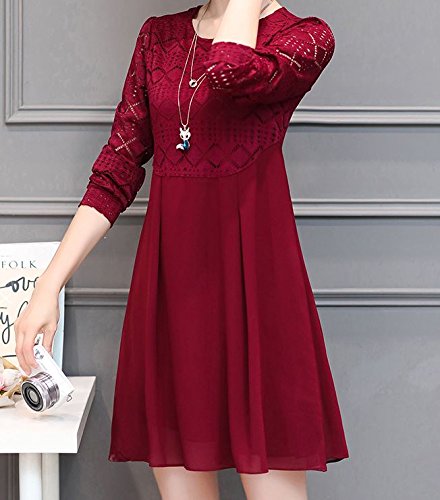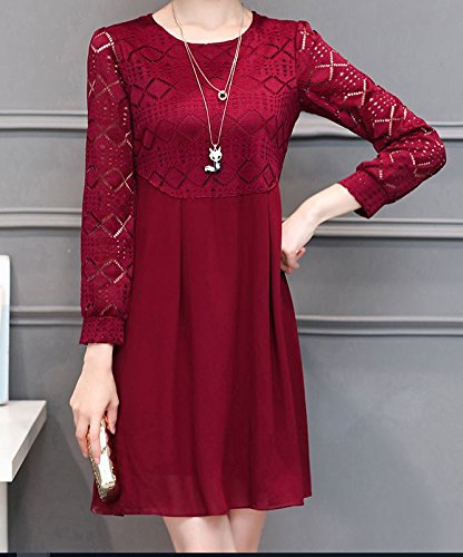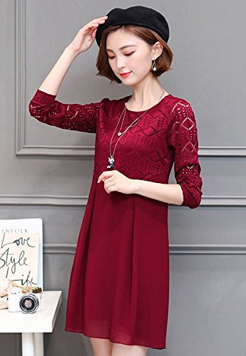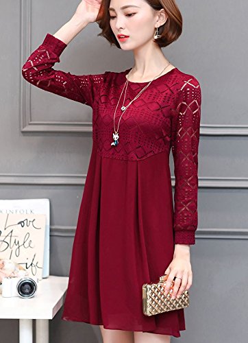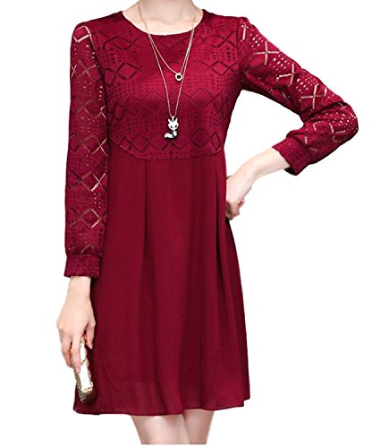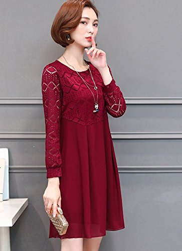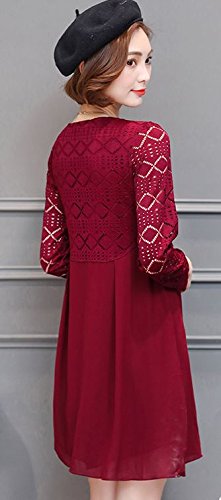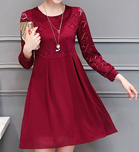 -. Title : 【ピーテイルドレス】パーティードレス 膝上丈 袖レース 長袖 結婚式 ワンピース パーティードレス ワインレッド 大きいサイズ
