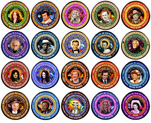 Binding : Apparel Product Description This set contains one pin of selected size for 20 country western singers; Country Singers include Minnie Pearl, Hank Williams Sr., Marty Robbins,Don Gibson, Ray Price, George Jones, Jim Reeves, Kitty Wells, Gene Autry, Wanda Jackson, Conway Twitty, Slim Whtman, Merle Haggard, Kenny Rogers, Roy Clark, Loretta Lynn, Johnny Cash, Dolly Parton, Bonnie Raitt, and Tammy Wynette 0