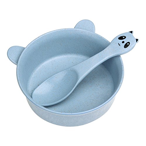 *Name: Wheat Panda Bowl Set; *Material: Food PP Wheat Straw; *Size: Bowl (12 * 9.5 * 4.5cm), spoon (13.5 * 3 * 2.5cm); *Weight: Bowl 70g, Spoon 15g; *Microwave: Available; *Suitable temperature: -20 ? to -120 ?; *Color: Nordic four-color (Pink / Blue / Green / Yellow); *Pattern: Cartoon; *Applicable to: Children; *Number of packages: Bowl spoon set.