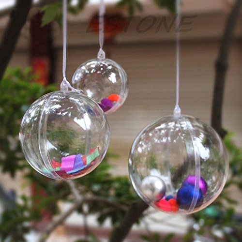 Since Transparent Clear Plastic Acrylic Fill-Able Snap-On Ball Holiday Style Ornament for Event Decorations, Hanging Arts & Crafts Accessories, Party Favor Holders- Pack of 12 (80mm)