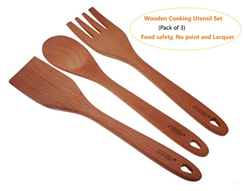 -. Title : 木製Cooking Utensil料理、スプーン、Shoveledフォーク、へら、NOペイント/ Noラッカー/ BPAなし、Real食品安全、3パック
