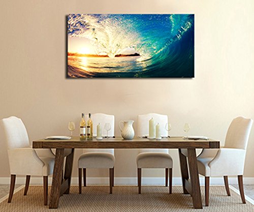 Sunset Waves Ocean Art Panoramic Canvas Art Painting Framed Canvas Prints Wall Art Decor Ready to Hang Bring life to your office, business or home with beautiful art from ARTEWOODS. This wood mounted giclee print is stylish, attractive and suitable for any contemporary and modern decor.