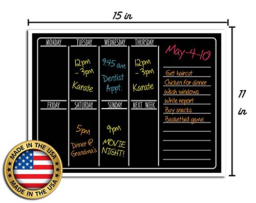 -. Feature : ? ORGANIZE & PLAN AHEAD - Our chalkboard designed calendar planners are ideal for to-do lists, notes, meal prepping, event planning, coordinating and preparing your daily/weekly/monthly schedule. A perfect addition to your home, office or classroom to help maximize organization. / ? VERSATILE WITH MULTIPLE USAGE - Our Evolve Skins can be used with any Wet & Liquid Chalk Erase Markers. MARKERS ARE NOT INCLUDED - Start planning and don't have the stress of forgetting things to buy, or events to attend. / ? DURABLE HIGH QUALITY STRONG VINYL STICKER - We use the highest grade vinyl and add a finishing coat of lamination to create a durable and high end finish. Made for sticking to surfaces without leaving sticky residue when removed. / ? MADE IN USA - Evolve Skins is proudly designed and P.R.Inted in USA. / ? LIFETIME GUARANTEE - At Evolve Skins, we are dedicated to your satisfaction. That is why we can offer a lifetime guarantee. If you are ever not satisfied with the performance of your 'Black Weekly Calendar' send it back with no questions asked!