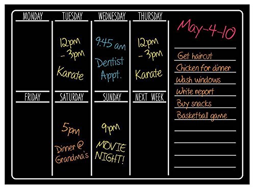 -. Title : Black Fluorescent Dry Erase Vinyl Decal Wall Sticker ? Black Weekly Calendar ? Daily Planning Message Board To-Do List & Organizer ? Compatible with Wet & Liquid Chalk Markers