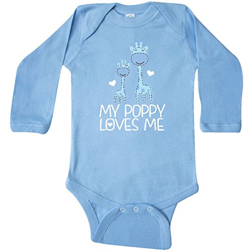 Product Description My Poppy loves me Long Sleeve Creeper for a grandchild has blue colored giraffe grandpa and grandson and makes a fun gift idea from a grandfather. 0