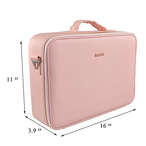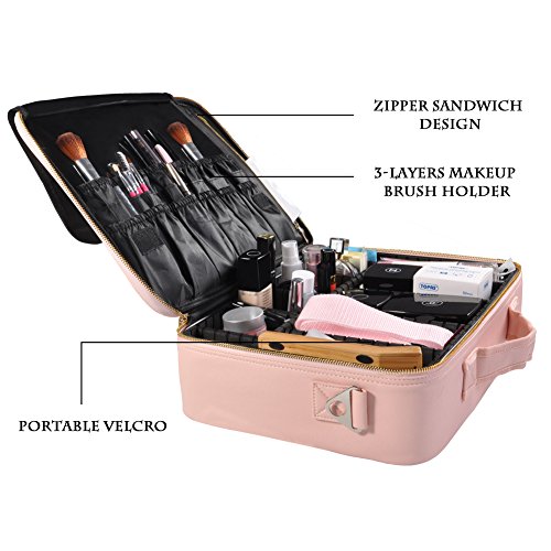 Portable Travel Makeup Bag, Waterproof Makeup Train Case Cosmetic Organizer Kit Artists Storage for Cosmetics, Makeup Brush Set, Toiletry And Travel Accessories(Medium,Pink)